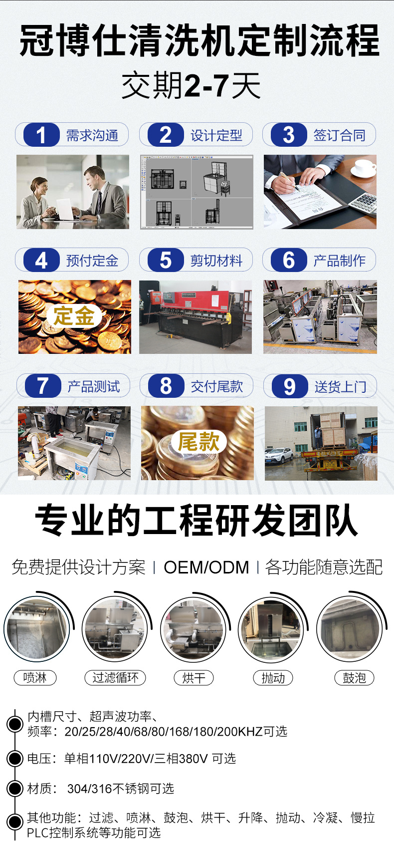 - 五槽工藝:超聲波清洗+過濾>漂洗>烘干其它等工藝可定制;