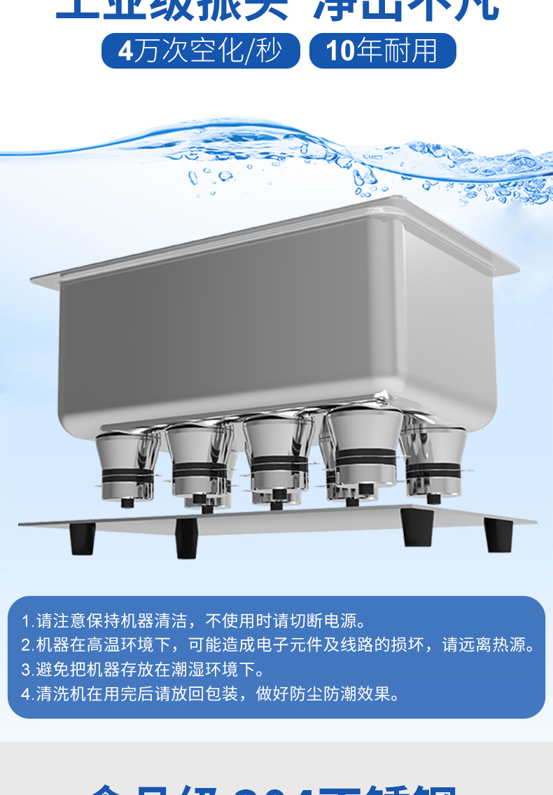 - 工業(yè)換能器: 采用工業(yè)震頭40KHz,力度強勁效果佳;