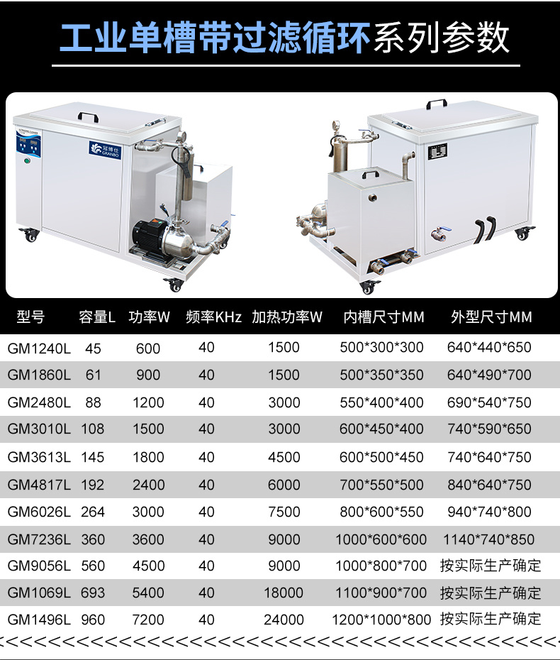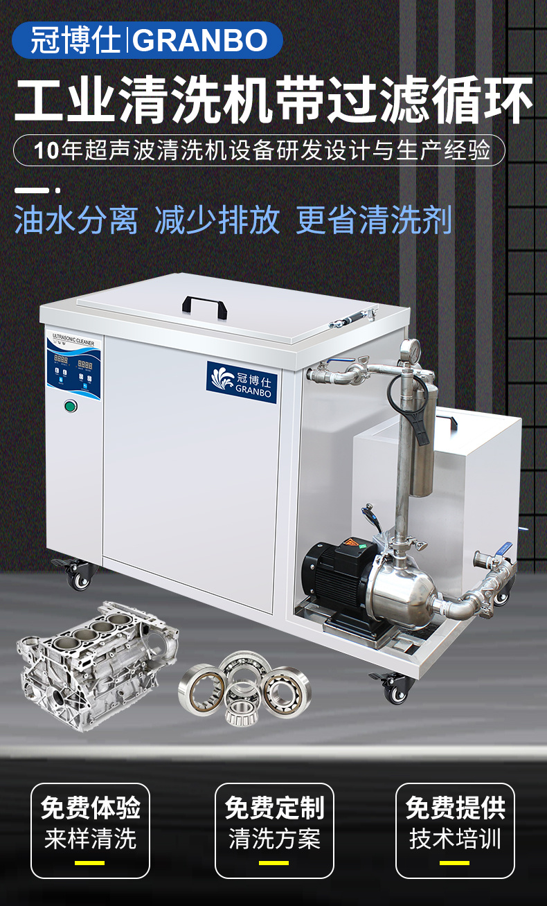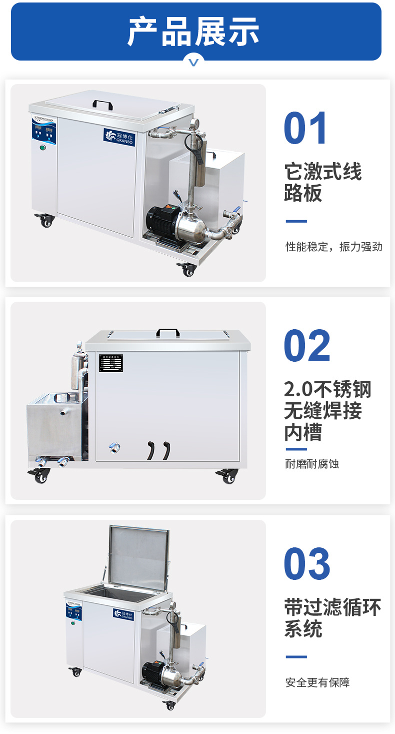 冠博仕超聲波清洗機(jī) 工業(yè)單槽機(jī) 側(cè)置過(guò)濾循環(huán)系統(tǒng) 45L-960L可選 支持定制