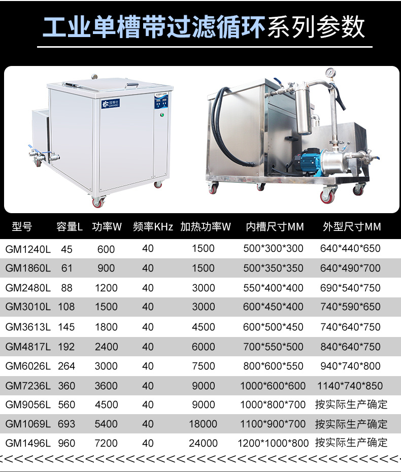 冠博仕超聲波清洗機 工業(yè)單槽機 后置過濾循環(huán)系統(tǒng) 45L-960L可選 支持定制