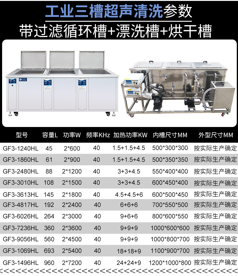 冠博仕GF3-1860HL三槽超聲波清洗機(jī)|61L/900W|45L-960L容量可選支持定制