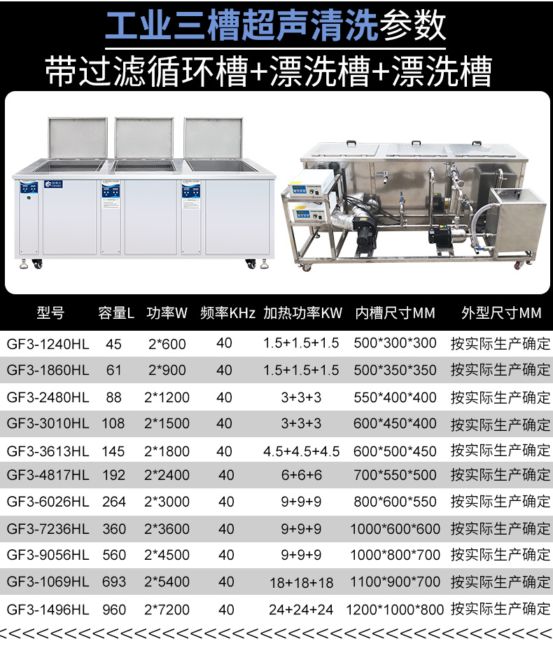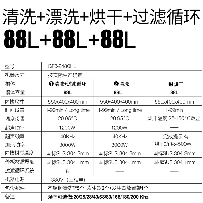 冠博仕GF3-2480HL三槽超聲波清洗機(jī)|88L/1200W|45L-960L容量可選支持定制
