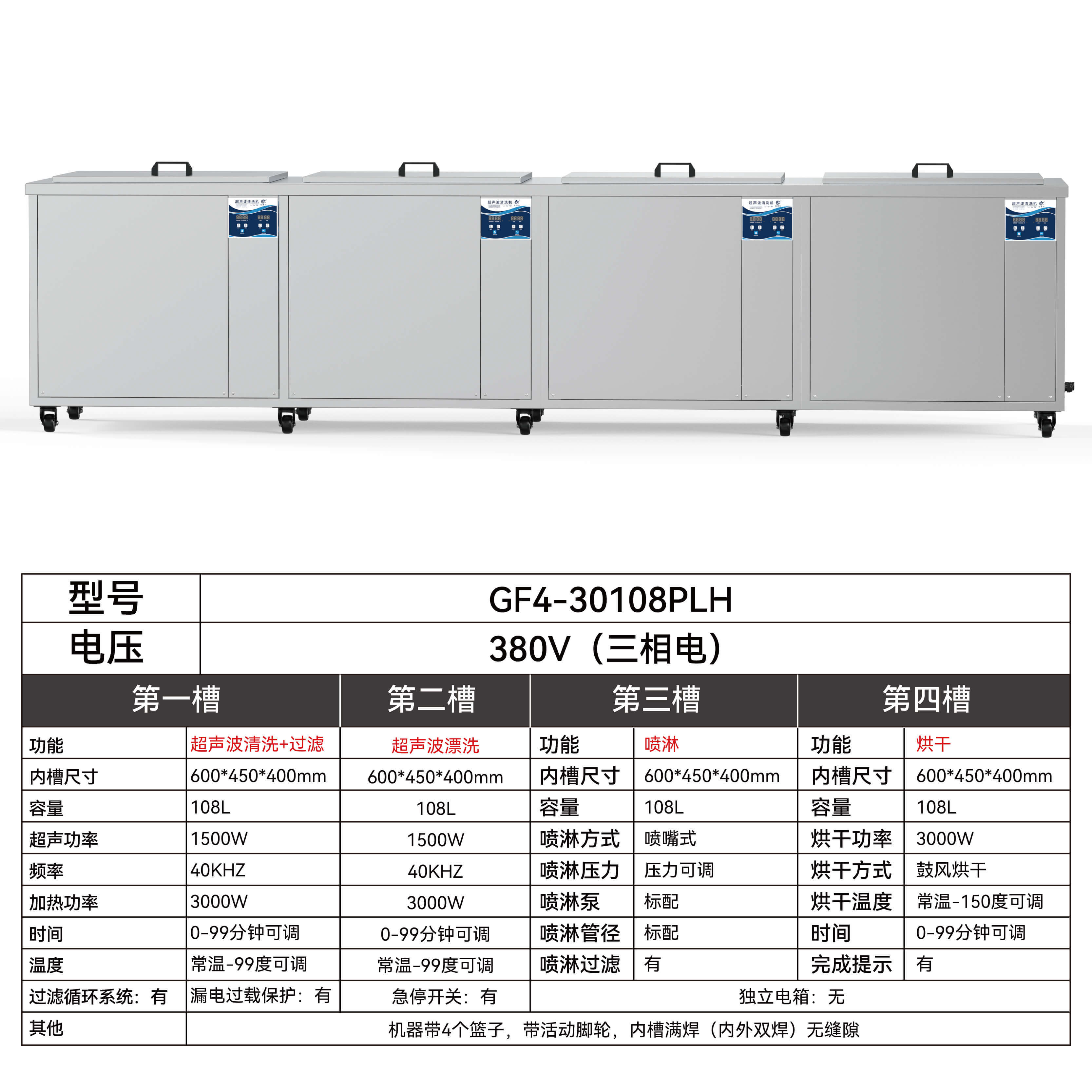 機器帶4個籃子,帶活動腳輪,內(nèi)槽滿焊(內(nèi)外雙焊)無縫隙
