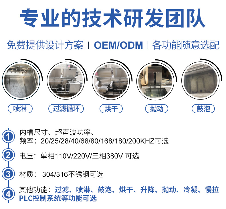 • 雙槽工藝:超聲波清洗+過(guò)濾+漂洗,烘干等工藝可定制