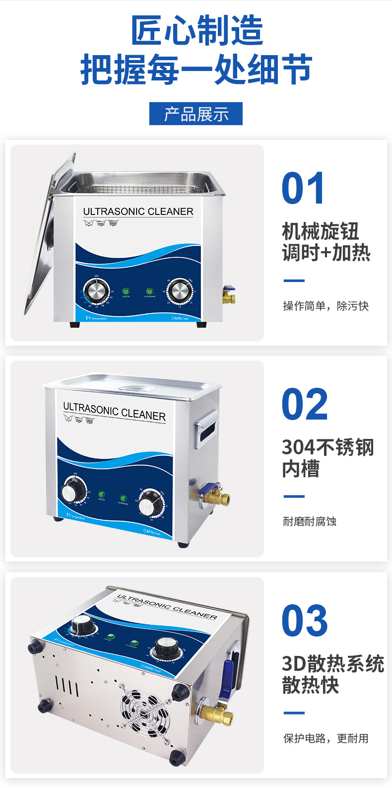 - 數(shù)碼顯示:數(shù)碼顯示清洗時(shí)間且有倒計(jì)時(shí)讀秒功能
