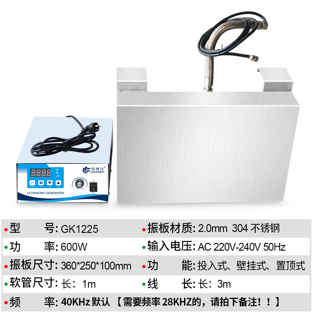 超聲波震板、發(fā)生器、發(fā)生器電源、說(shuō)明書(shū)、合格證保修卡、內(nèi)置珍珠泡沫。